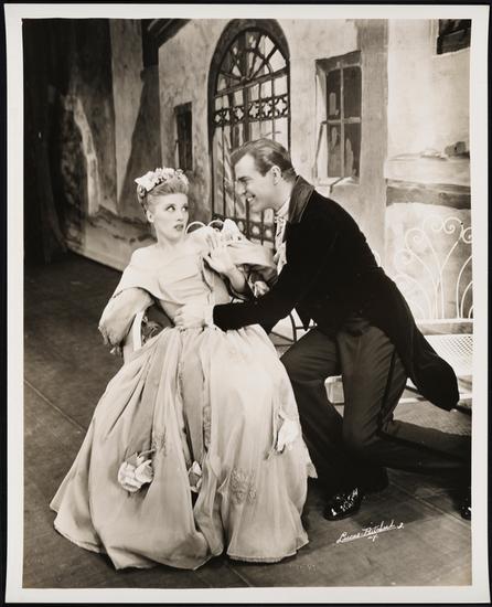 [Edith Fellows as Marie-Louise and Charles Judels as Alphonse in "Louisiana Lady".]