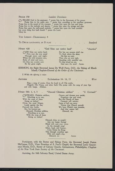 Service for April 30, A.D., 1889, being the One Hundredth Anniversary of the Inauguration of George Washington, April 30, 1789.