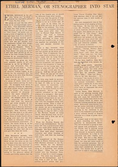 Ethel Merman Clippings December 13, 1936 - June 29, 1939