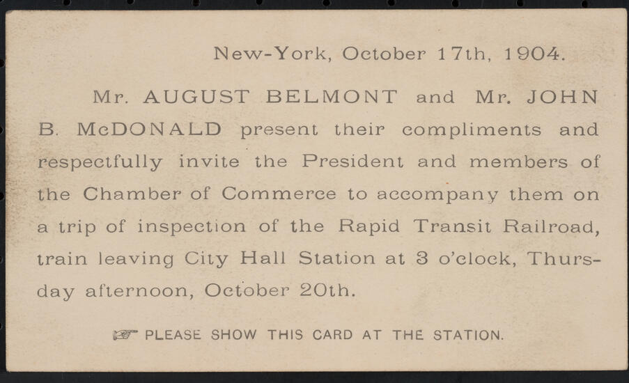 To meet Mr. August Belmont, President of the Interborough Rapid Transit Company