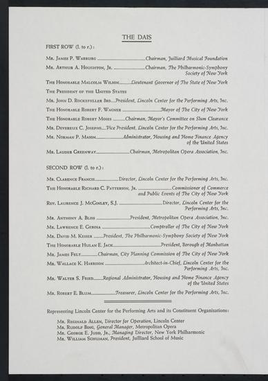 Lincoln Center for the Performing Arts Ground-Breaking Ceremony