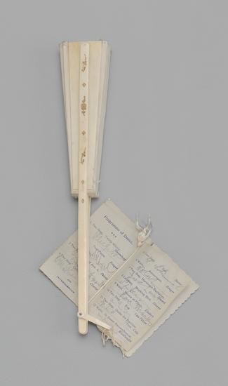 Folding fan of hand-painted white silk satin leaf - Bachelor Circle - Harmonie Club