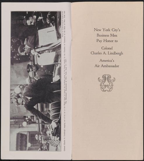 Breakfast in Honour of Captain Charles A. Lindbergh on the presentation of the Raymond Orteig 25,000 Dollar Prize