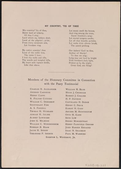 National Testimonial to Commander Robert E. Peary, U.S.N.