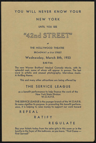 The Service League, New York State Division of the Women's Organization for National Prohibition Reform Presents "42nd Street"