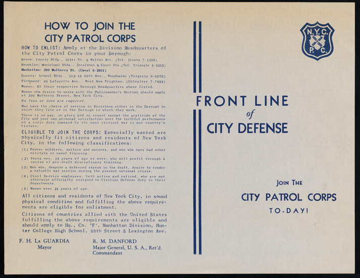Police Department, City of New York. Home Defense League