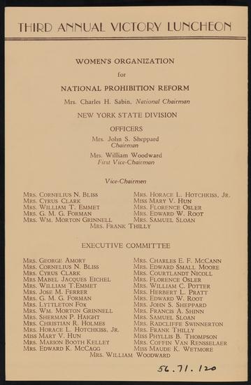 Third Annual "Victory Luncheon" of Women's Organization for National Prohibition Reform, New York State Division