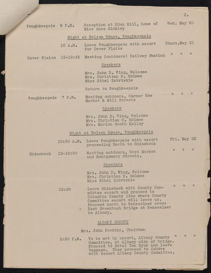 Schedule for "Motorcade" Under Auspices of State Meetings Committee of the Women's Organization for National Prohibition Reform