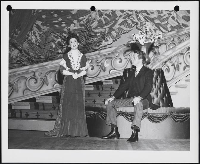 [Keith Andes as John Shand and Betty Paul as Maggie Wylie in "Maggie".]