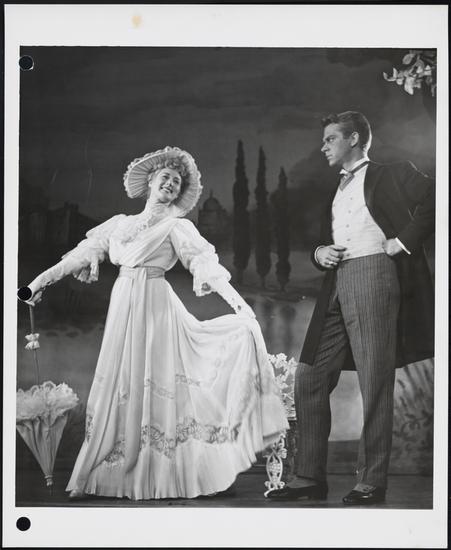 [Celia Lipton as Sybil Tenterdon and Keith Andes as John Shand in "Maggie".]