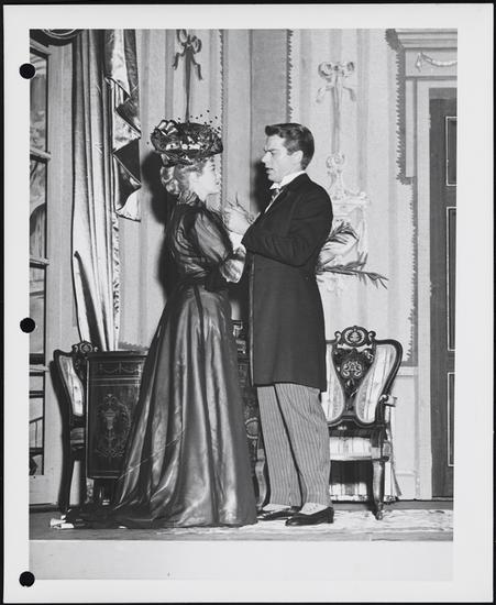 [Celia Lipton as Sybil Tenterdon and Keith Andes as John Shand in "Maggie".]