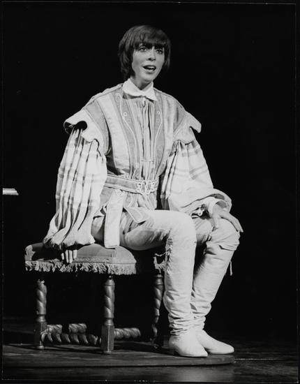 [Joel Higgins as Sebastian, Sherry Mathis as Olivia and Catherine Cox as Viola in "Music Is".]