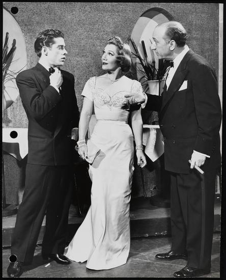 [Vivienne Segal as Vera Simpson, Harold Lang as Joey Evans and Lewis Bolyard as Louis in "Pal Joey".]