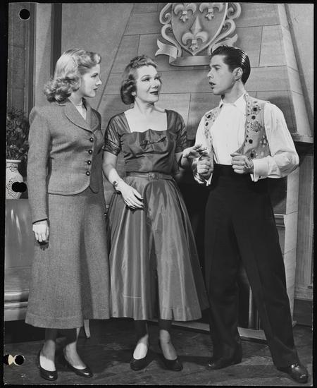 [Vivienne Segal as Vera Simpson, Harold Lang as Joey Evans and Lewis Bolyard as Louis in "Pal Joey".]