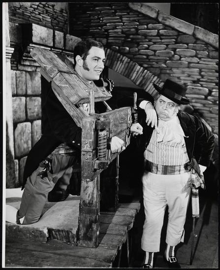 [Nino Manfredi in the title role and Aldo Fabrizi as Mastro Titta in "Rugantino".]
