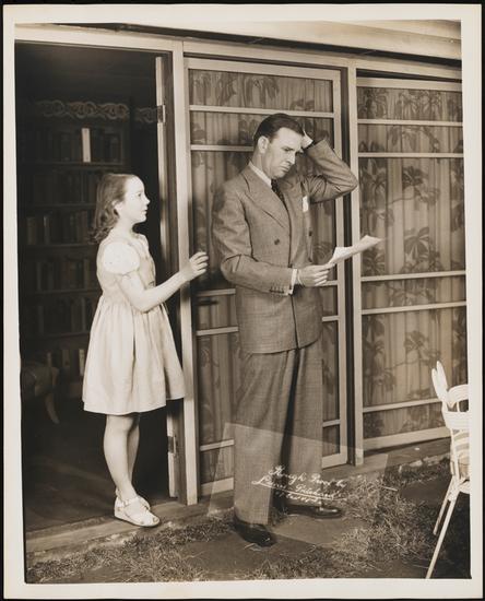[Victor Kilian as Ben, Ben Smith as Mr. Stewart and Pat Hitchcock as Virginia Stewart in "Solitaire".]