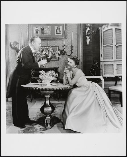 [Charles Boyer as Philip Clair and Mary Martin as Jane Kimball in "Kind Sir".]
