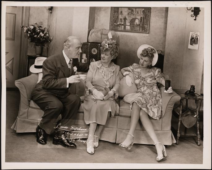 [Ruth Gordon as Paula Wharton, Harvey Stephens as Max Wharton and Loring Smith as Robert Drexel Gow in "Over 21".]