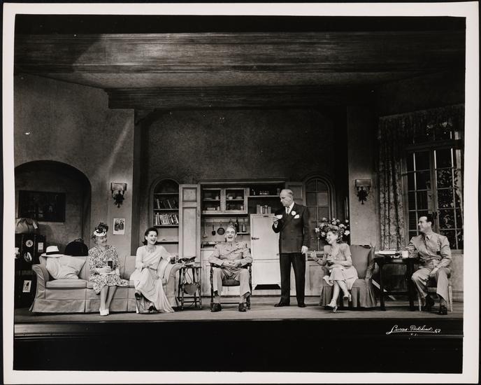 [Ruth Gordon as Paula Wharton, Harvey Stephens as Max Wharton and Loring Smith as Robert Drexel Gow in "Over 21".]