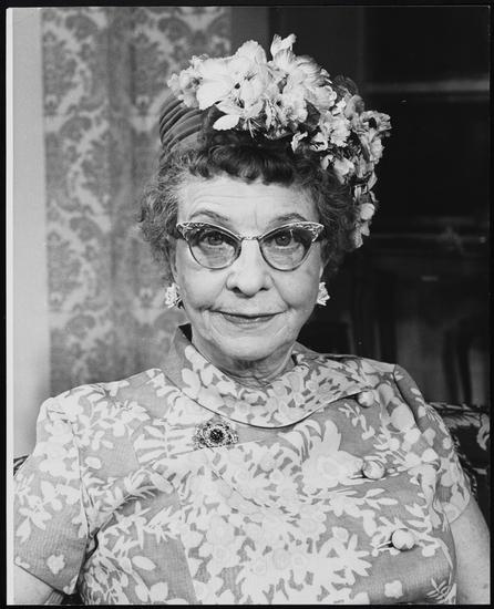 [Molly Picon as Hortense Brand in "Paris Is Out!".]