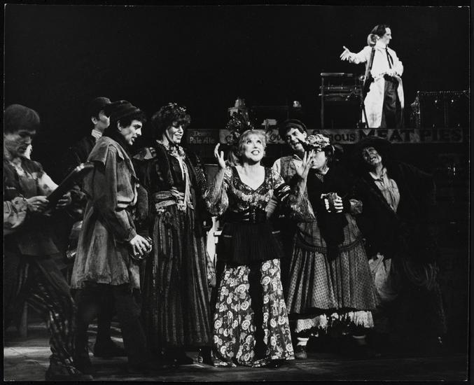 [Dorothy Loudon as Mrs. Lovett and George Hearn in the title role of "Sweeney Todd".]