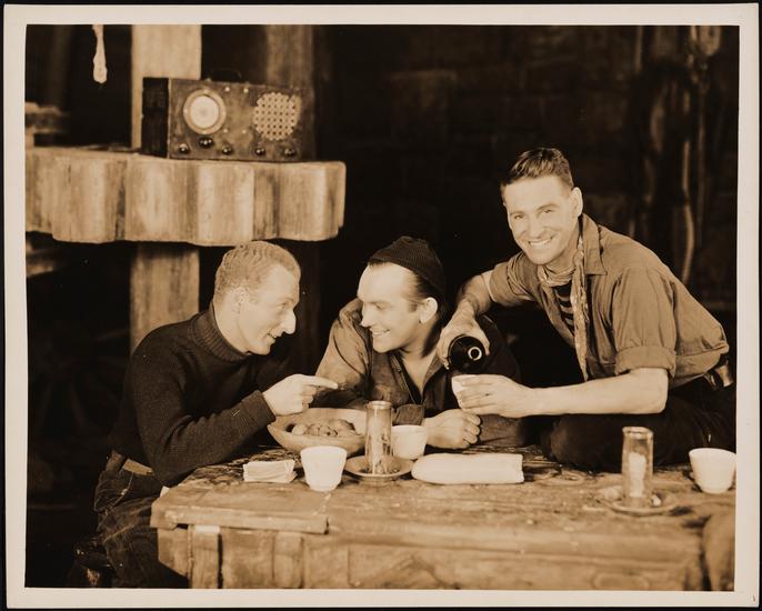 [Joseph De Santis as Moy, Peter Von Zerneck as a German Captain and Roy Hargrave as Lew in "Men in Shadow".]