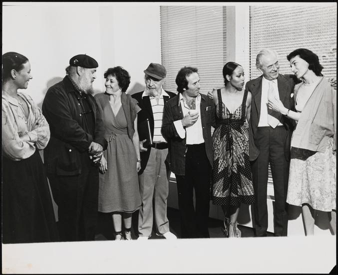 [Martin Gabel, Inga Swenson, Jerome Coopersmith, Harold Prince, Ray Jessel and Marian Grudeff during rehearsals for "Baker Street"]