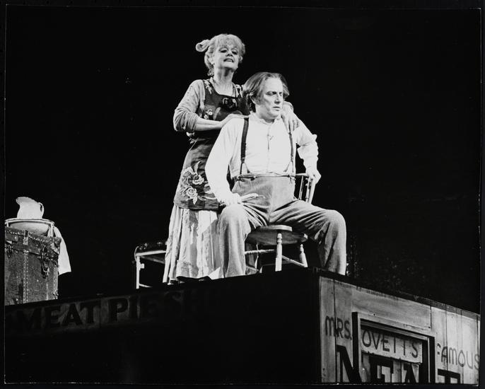 [Angela Lansbury as Mrs. Lovett and George Hearn in the title role of "Sweeney Todd".]