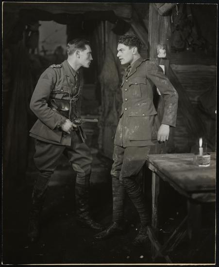 [Derek Williams as 2nd Lieut. Raleigh and Leon Quartermaine as Lieut. Osborne in "Journey's End".]