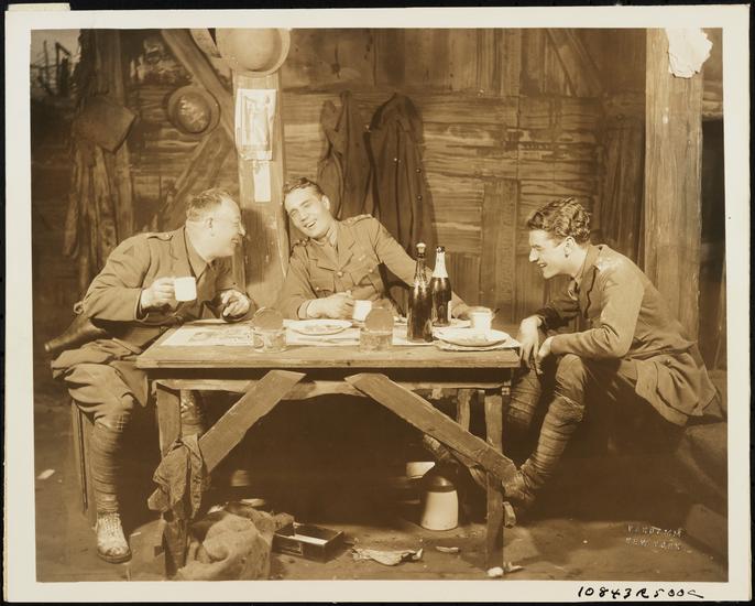 [Henry Wenman as 2nd Lieut. Trotter, Victor Stanley as Private Mason and Leon Quartermaine as Lieut. Osborne in "Journey's End".]