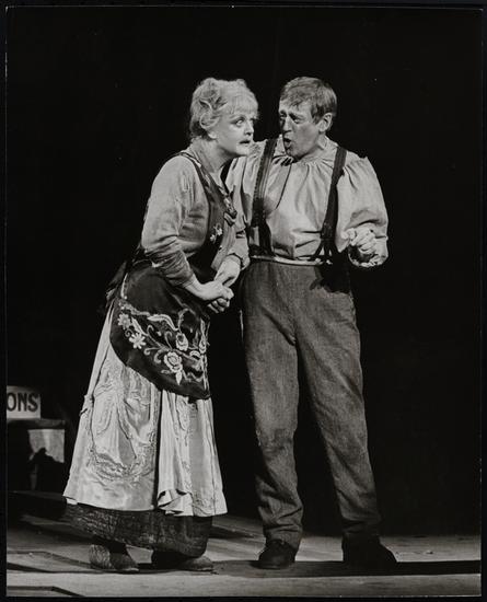 [Angela Lansbury as Mrs. Lovett and Len Cariou in the title role of "Sweeney Todd".]