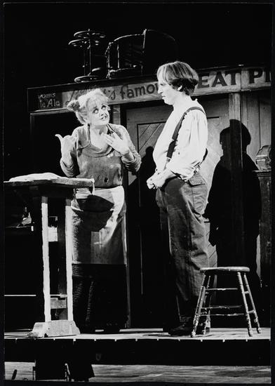 [Angela Lansbury as Mrs. Lovett and Len Cariou in the title role of "Sweeney Todd".]
