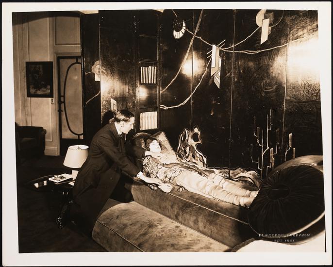 [A. E. Matthews as Philip Voaze and Kathlene MacDonell as Deborah Kane in Act 2 of "Interference".]