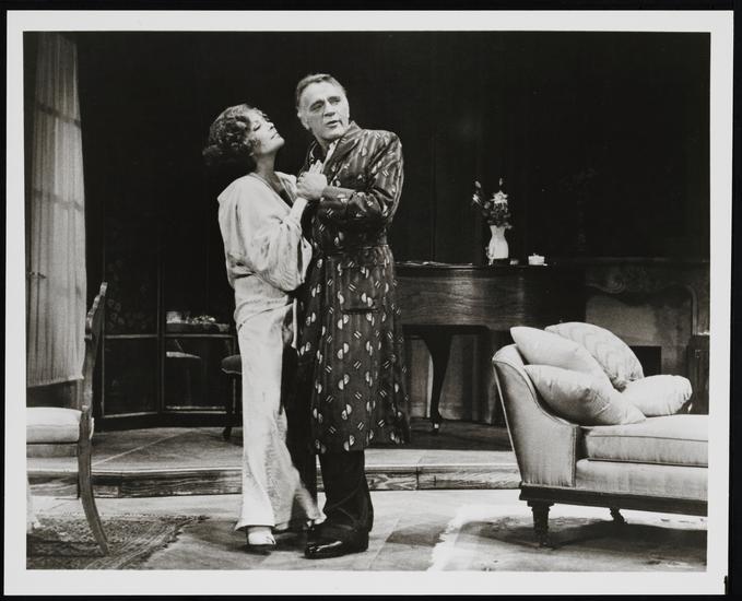 [Kathryn Walker as Sybil Chase and Richard Burton as Elyot Chase in "Private Lives".]