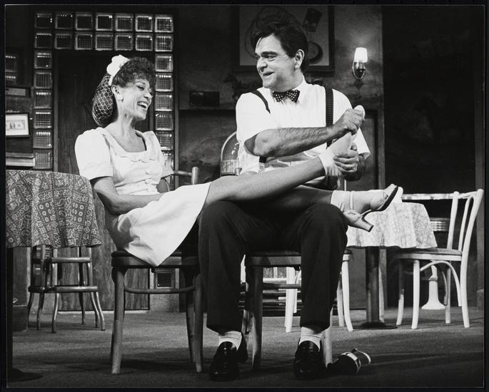 [Rita Moreno as Louise and James Coco as Wally in "Wally's Cafe".]