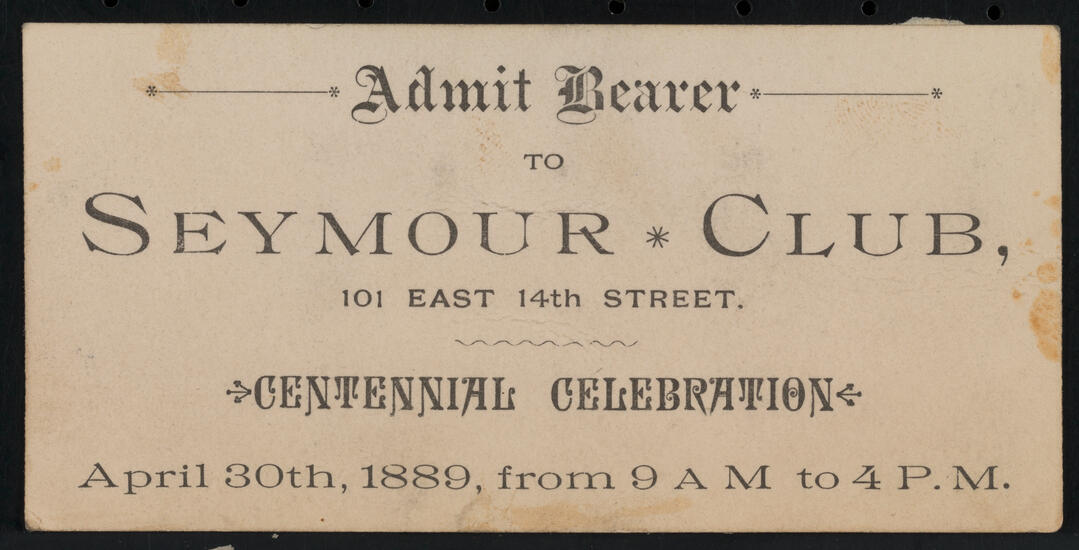 Centennial Celebration of the Inauguration of George Washington as President of the United States. Reception at the Lawyers' Club