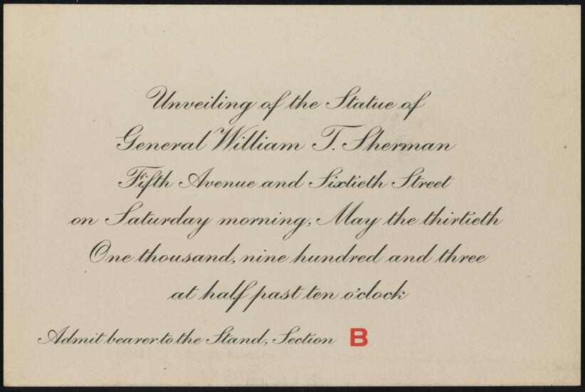 [Statue of Sherman in Central Park, 5th Avenue and 59th Street. Setting and pedestal by Charles McKim.]