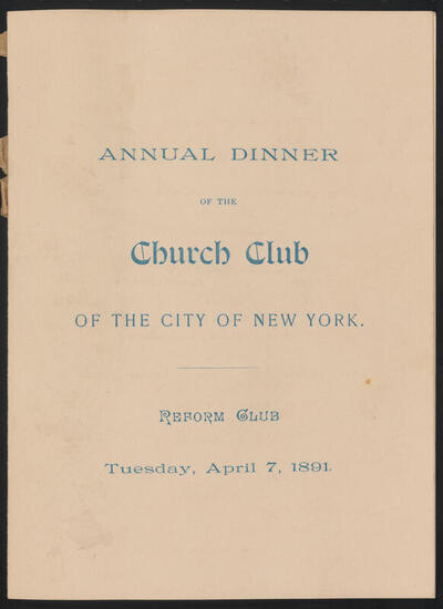 Fourth Annual Dinner of the Republican Club of the City of New York
