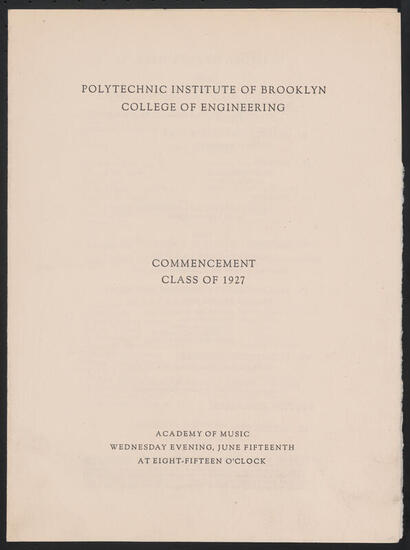 Polytechnic Institute of Brooklyn College of Engineering. Class of 1920 Commencement