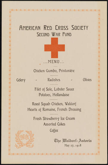 Seating Arrangement. Dinner. American Red Cross Second War Fund