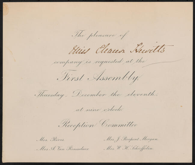 [The pleasure of Miss Eleanor Hewitt's company is requested at the Second Assembly.]