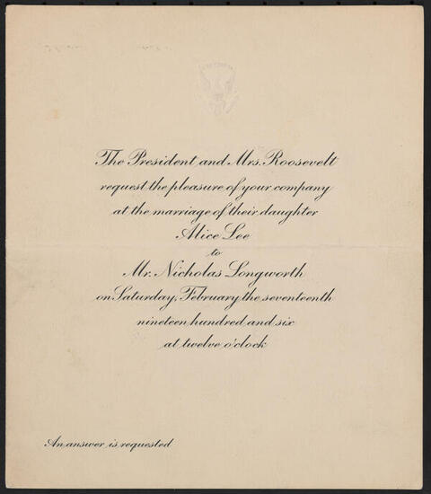Social Functions, Weddings, Roosevelt (Alice) - Longworth (Nicolas).