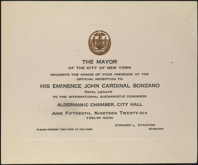 [Invitation on behalf of Mayor James J. Walker to attend official reception in honor of Major Mario De Bernardi at City Hall on November 24, 1926.]