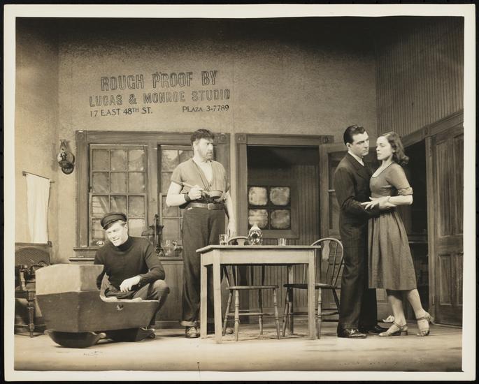 [Louis Hector as Black McDonald, Helen Craig and Belinda McDonald and Horace McNally as Dr. Jack Davidson in "Johnny Belinda".]