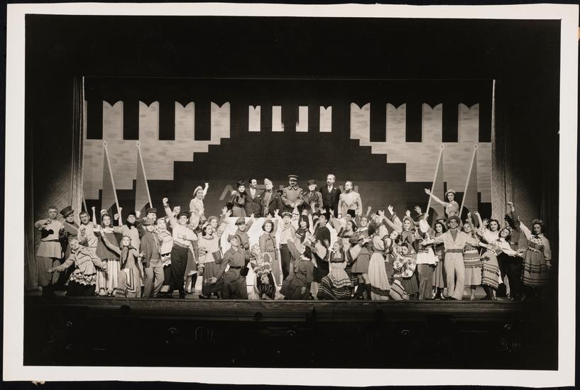 [Sophie Tucker as Mrs. Goodhue with her five daughters in "Leave It to Me!".]