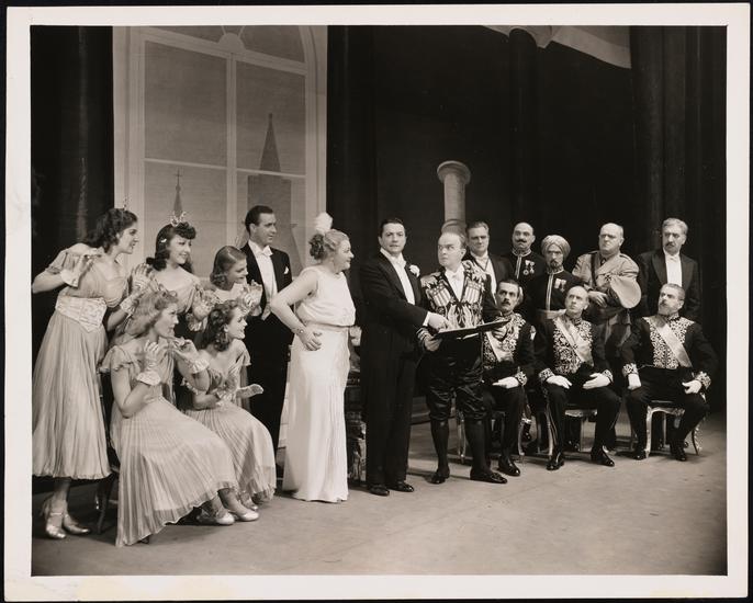[Victor Moore as Alonzo P. Goodhue, Tamara as Colette and William Gaxton as Buckley Joyce Thomas in "Leave It to Me!".]