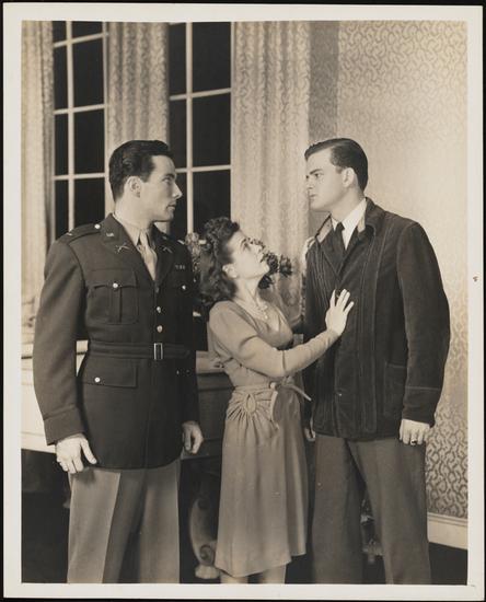 [Iris Hall as Vivienne Gordon, Margaret Early as Sarah Smith and Donald Murphy as Barry Pickens in "Try and Get It".]