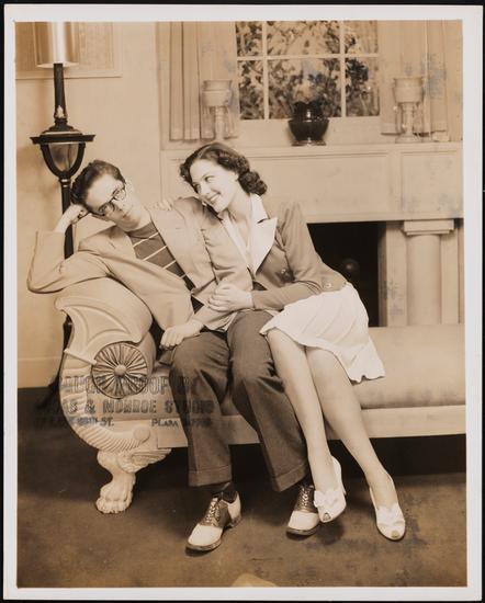 [Betty Furness as Lady Palfrey-Stuart and Alfred Etcheverry as Tony Stiles in "My Fair Ladies".]