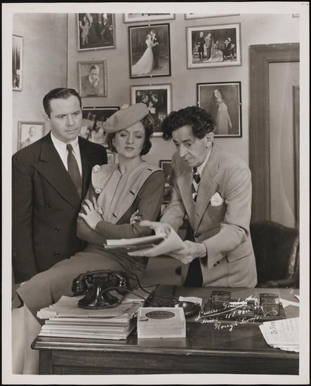 [David Burns as Walters, Willie Howard as Barney Short and Ethel Shutta as Daphne Drew in "My Dear Public".]