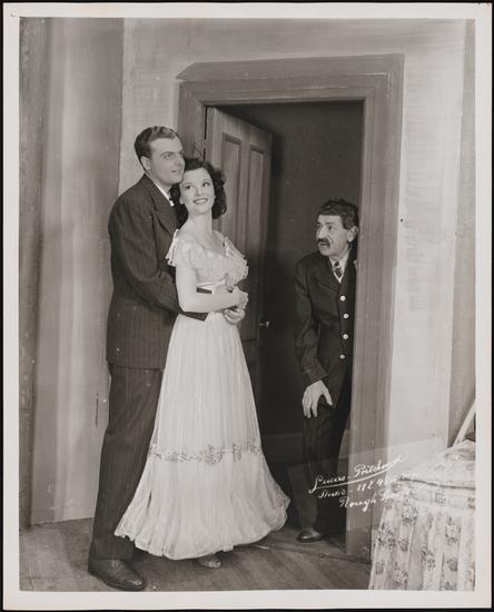 [Eric Brotherson as Byron Burns, Nanette Fabray as Jean and Georgie Tapps as Tapps in "My Dear Public".]